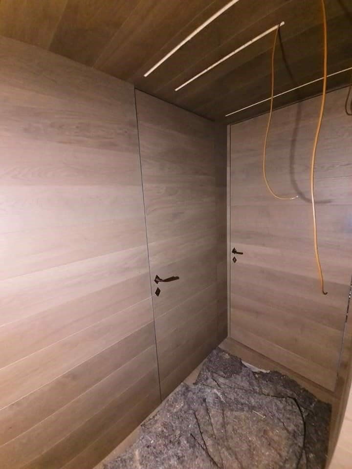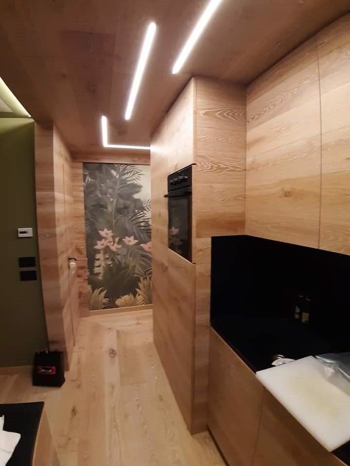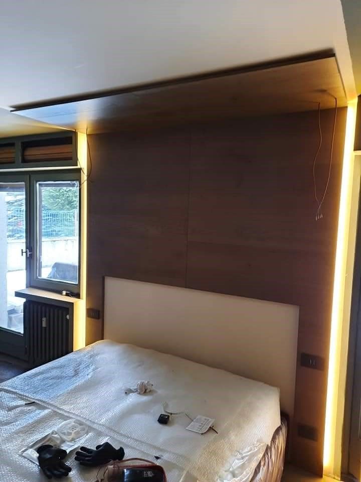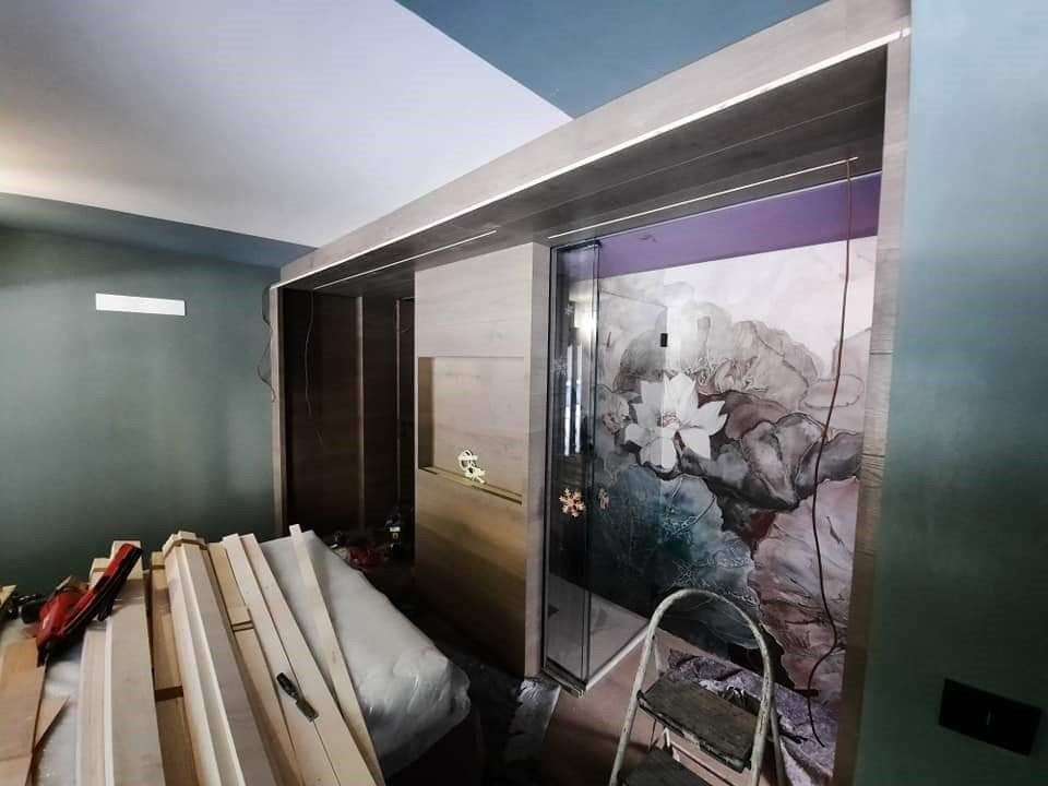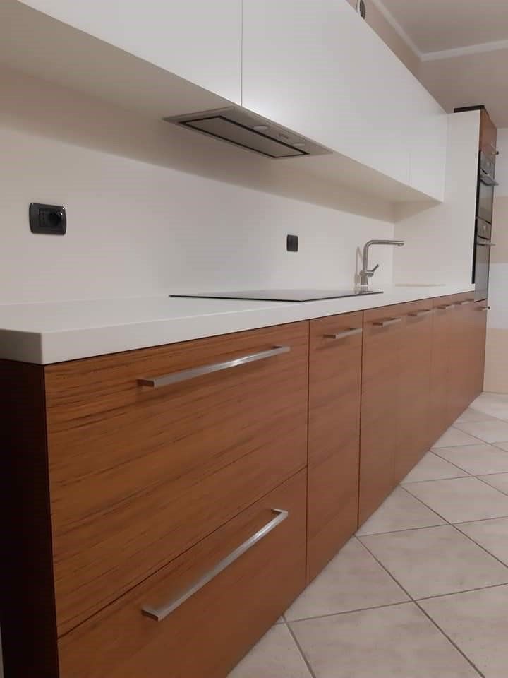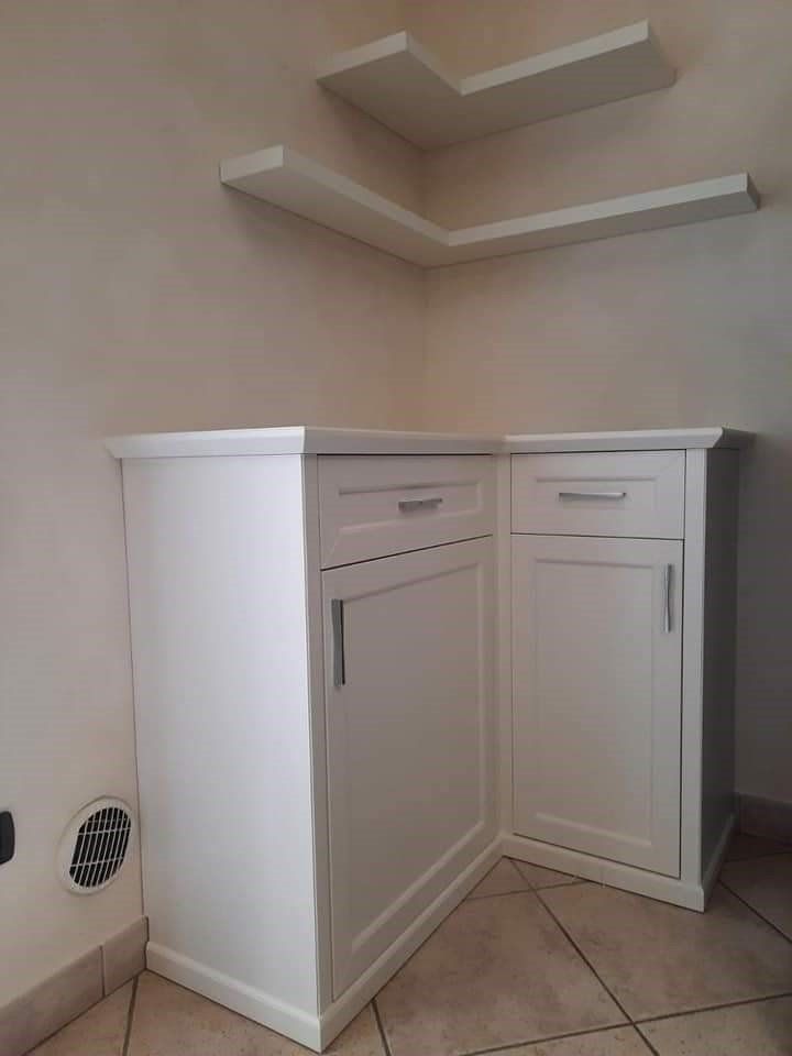 La nostra falegnameria è attrezzata per realizzare arredi di design per interni ed esterni; unendo il laccato con l'essenza del legno produciamo cucine di ottima qualità con top in corian. Lo studio e l'esperienza maturata su quest'ultimo materiale ha fatto in modo di non porci limiti di creazione. Specialisti nella progettazione di boiserie con porte integrate e armadi su misura.